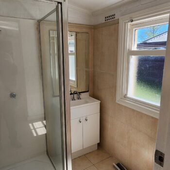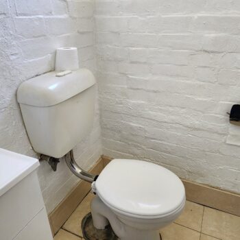 * Neat bathroom with shower and vanity, plus a separate toilet