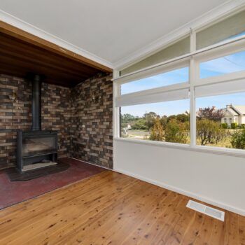 * Three living spaces, including a large L-shaped lounge with adjoining sunroom, featuring original timber floors and a slow combustion heater.